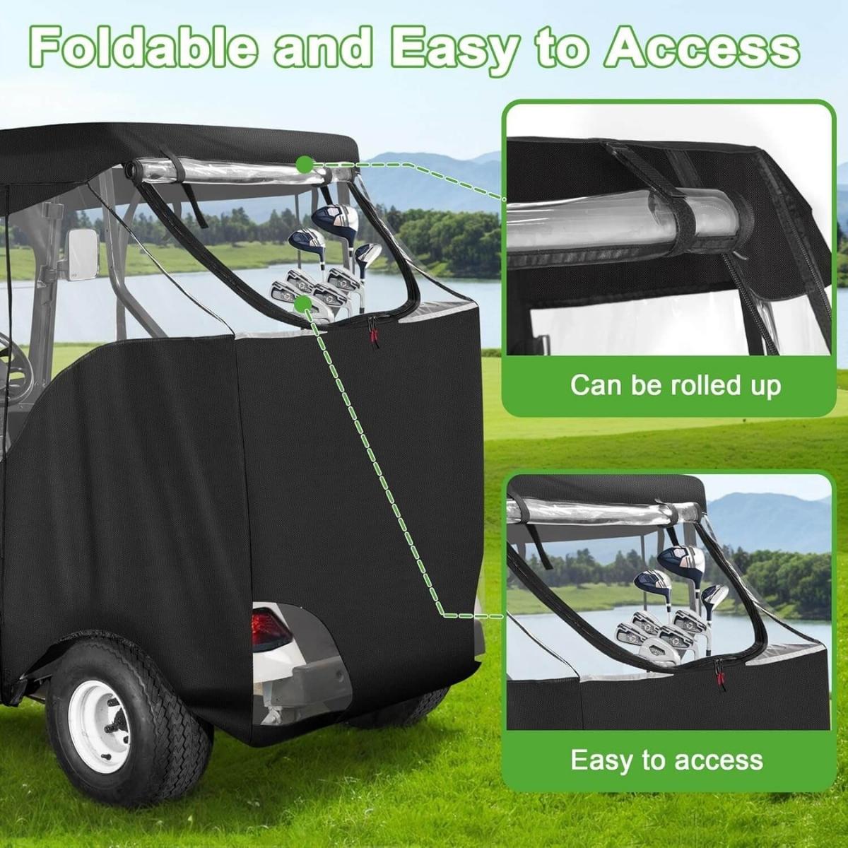 „Diese Abdeckung passt perfekt auf unseren EZGO TXT! Das 600D-Material ist deutlich strapazierfähiger als Standardabdeckungen. Die Montage war schnell und einfach, und unser Golfwagen blieb auch bei starken Regenfällen absolut trocken. Die transparenten Fenster bieten hervorragende Sicht.“