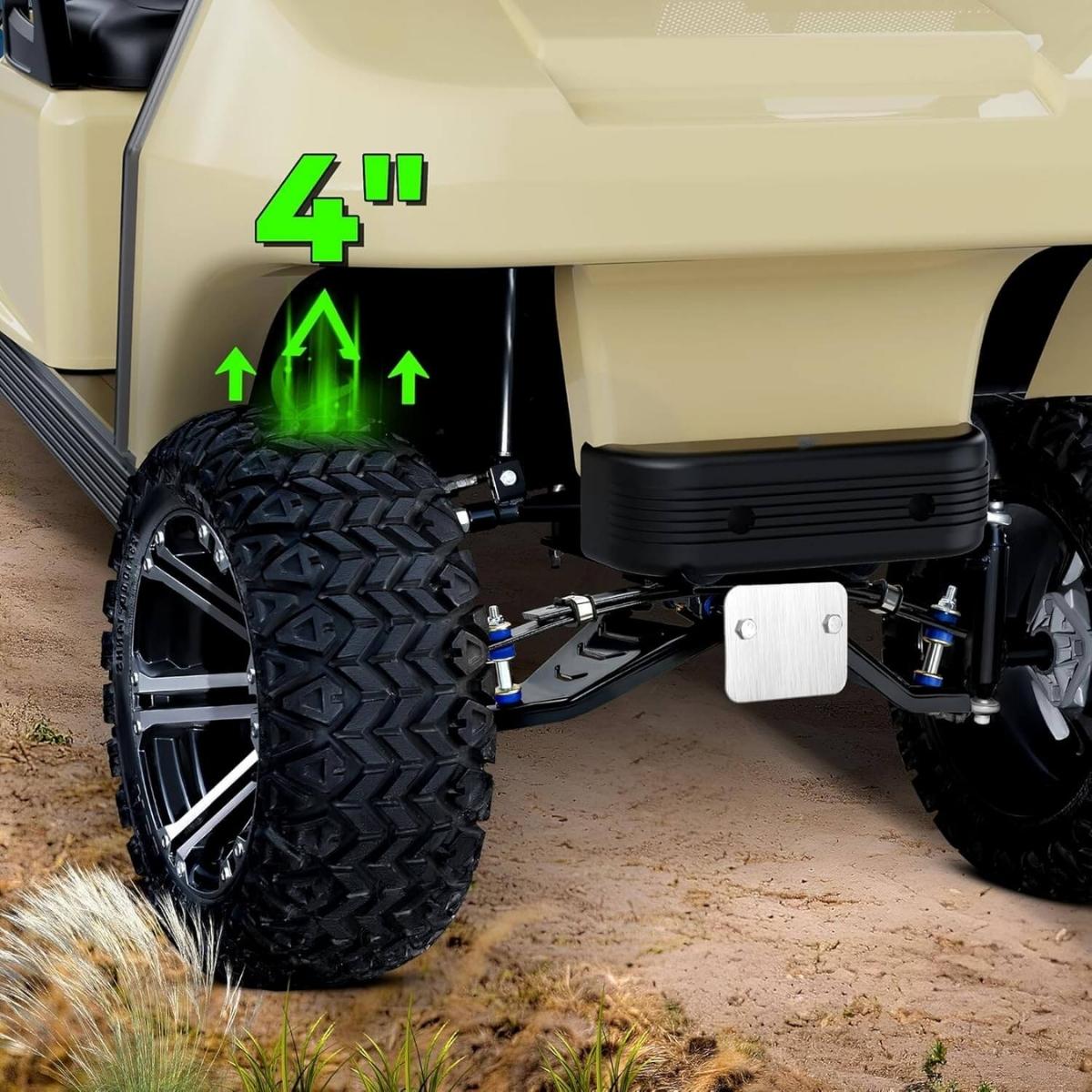 „Dieses Doppel-A-Arm-Liftkit hat meinen Club Car DS komplett verändert! Der Fahrkomfort ist fantastisch und die Installation war unkompliziert. Die Doppel-A-Arm-Konstruktion macht im Vergleich zu Spindellifts einen riesigen Unterschied im Fahrverhalten.“