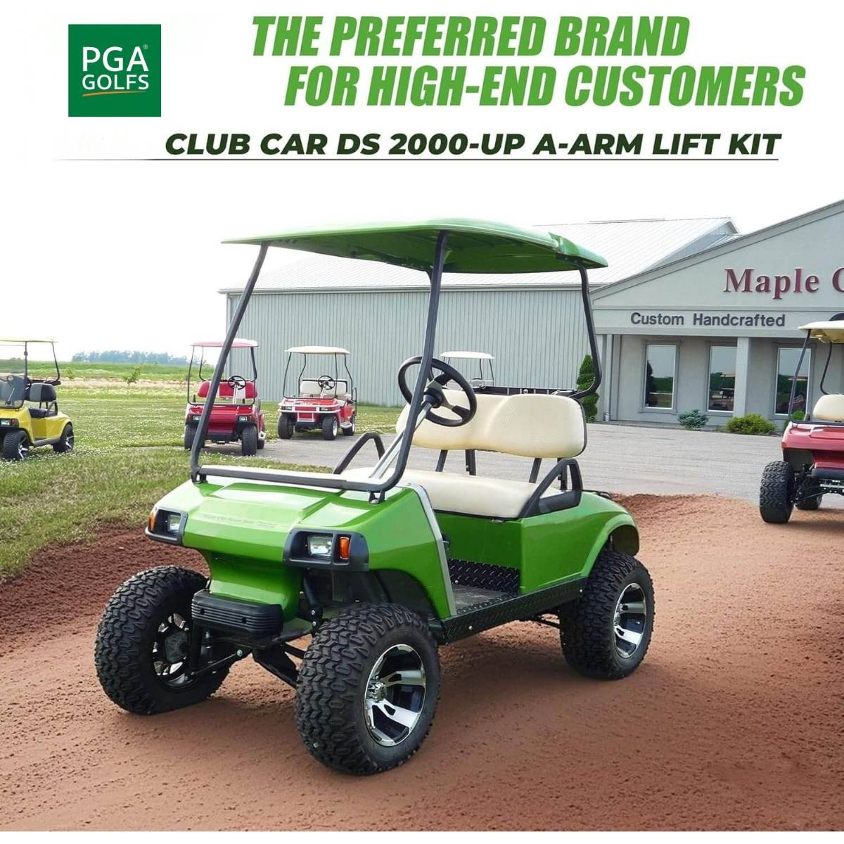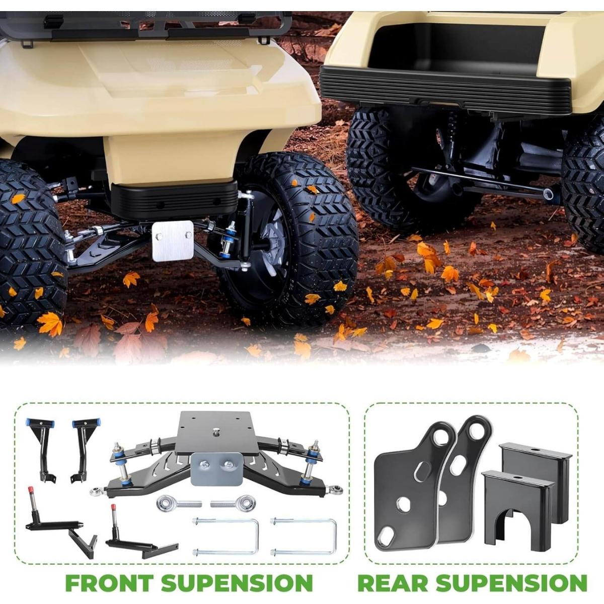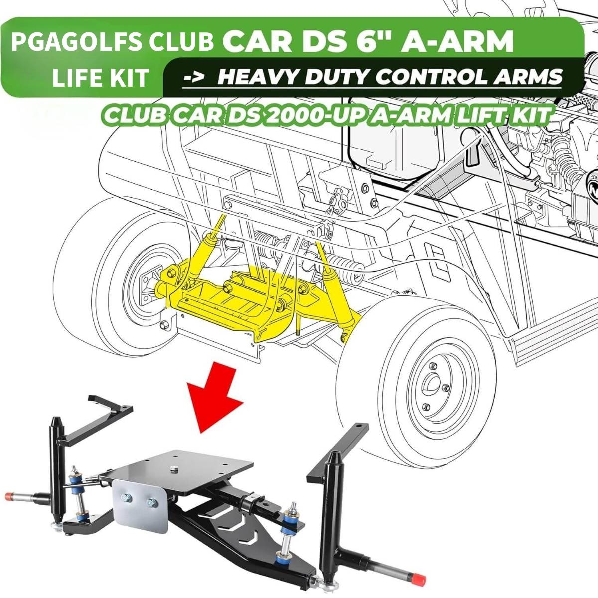 Die fortschrittliche Doppel-A-Arm-Konstruktion hebt dieses Höherlegungskit von herkömmlichen Spindelhöherlegungen ab und sorgt für überlegenes Handling, optimale Spurtreue und professionelle Langlebigkeit. Speziell für Club Car DS-Modelle entwickelt, bietet dieses Kit die perfekte Kombination aus verbesserter Geländegängigkeit und erhaltenem Fahrkomfort. Ob für den gewerblichen Einsatz, Offroad-Abenteuer oder eine optische Aufwertung – dieses Höherlegungskit ist das ultimative Upgrade für Ihren Club Car DS.