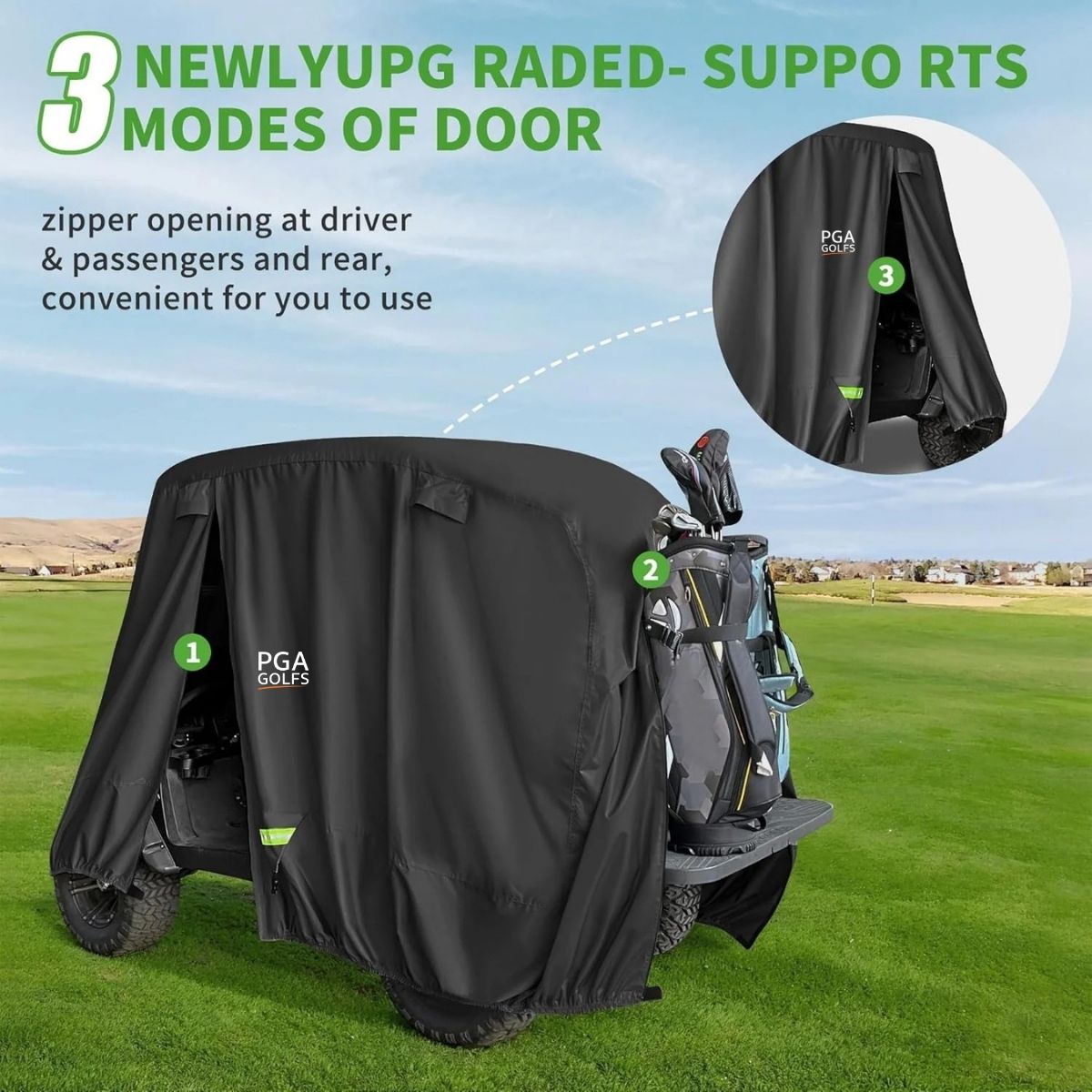 Wir präsentieren unsere robuste Golfwagenabdeckung, speziell entwickelt für 2- und 4-Sitzer-Modelle . Sie dient als zuverlässiger Schutz und bietet eine Art „mobile Garage“, die Ihren Golfwagen jahrelang sauber und geschützt hält.