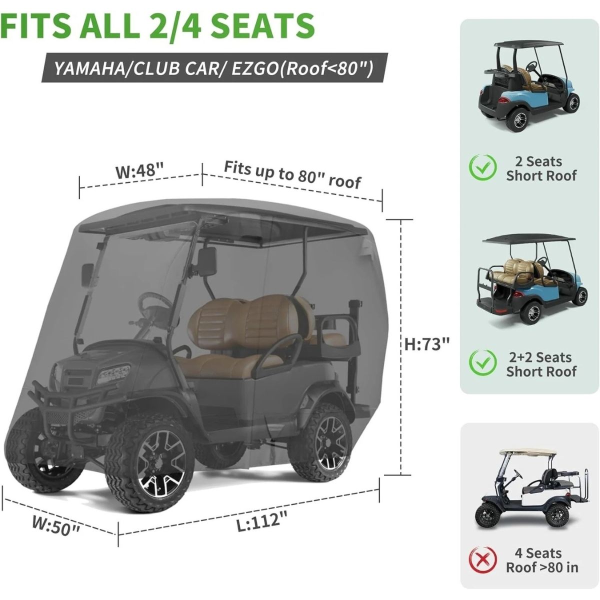 Passend für 2- und 4-Sitzer-Golfwagen: Entwickelt für die meisten gängigen 2- und 4-Sitzer-Golfwagenmodelle (z. B. Club Car, EZGO, Yamaha).
