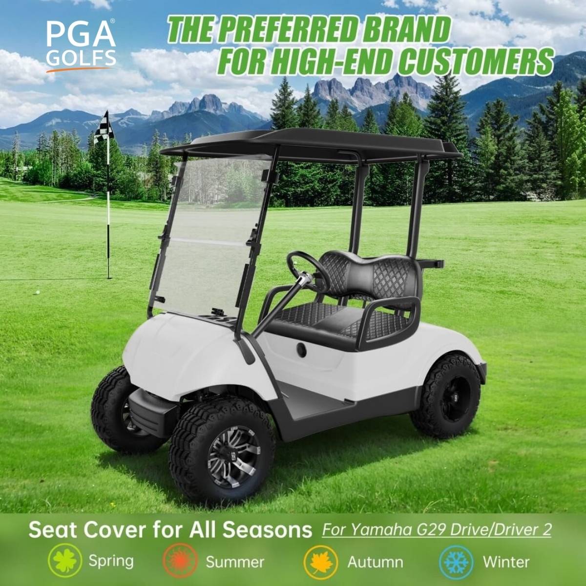 Specifically designed for Yamaha G29/Drive/Driver 2 models, these premium diamond stitch seat covers combine luxury aesthetics with practical protection. The elegant diamond pattern adds sophistication to your cart's interior while the advanced materials provide superior protection against sun, water, and daily wear. Easy to install and maintain, they're the perfect upgrade for discerning golf cart owners.