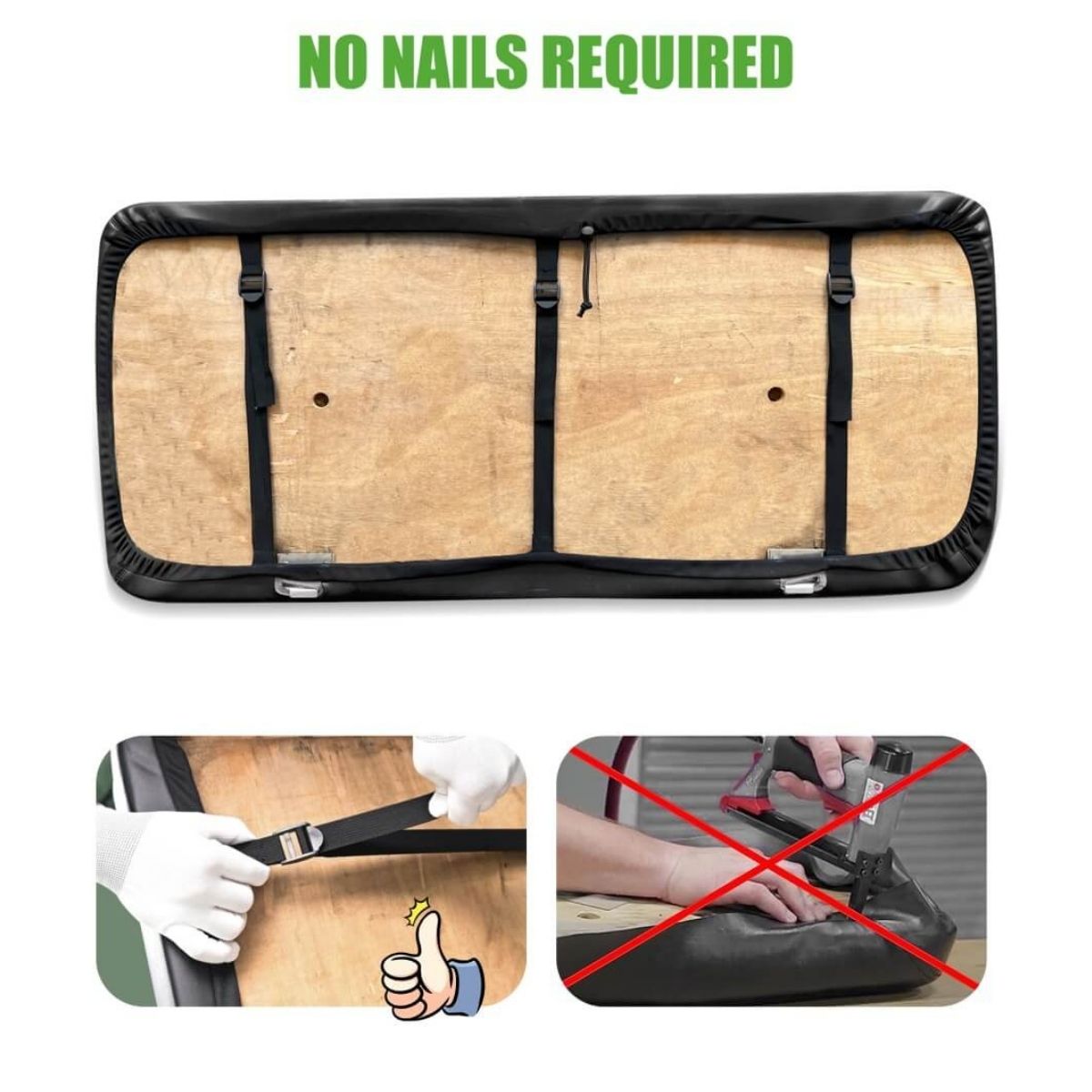 Non-slip rubberized backing keeps covers securely in place