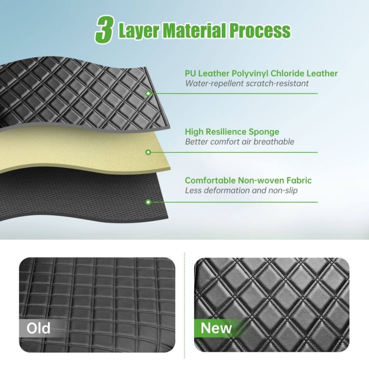 Luxury Diamond Stitch Design - Premium synthetic leather with elegant diamond quilted pattern